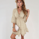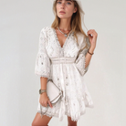 غيسلاين | فستان قصير بوهيمي – تطريزات دقيقة وياقة V