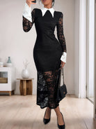 هانا | فستان ميدي أنيق بياقة متباينة وأكمام طويلة