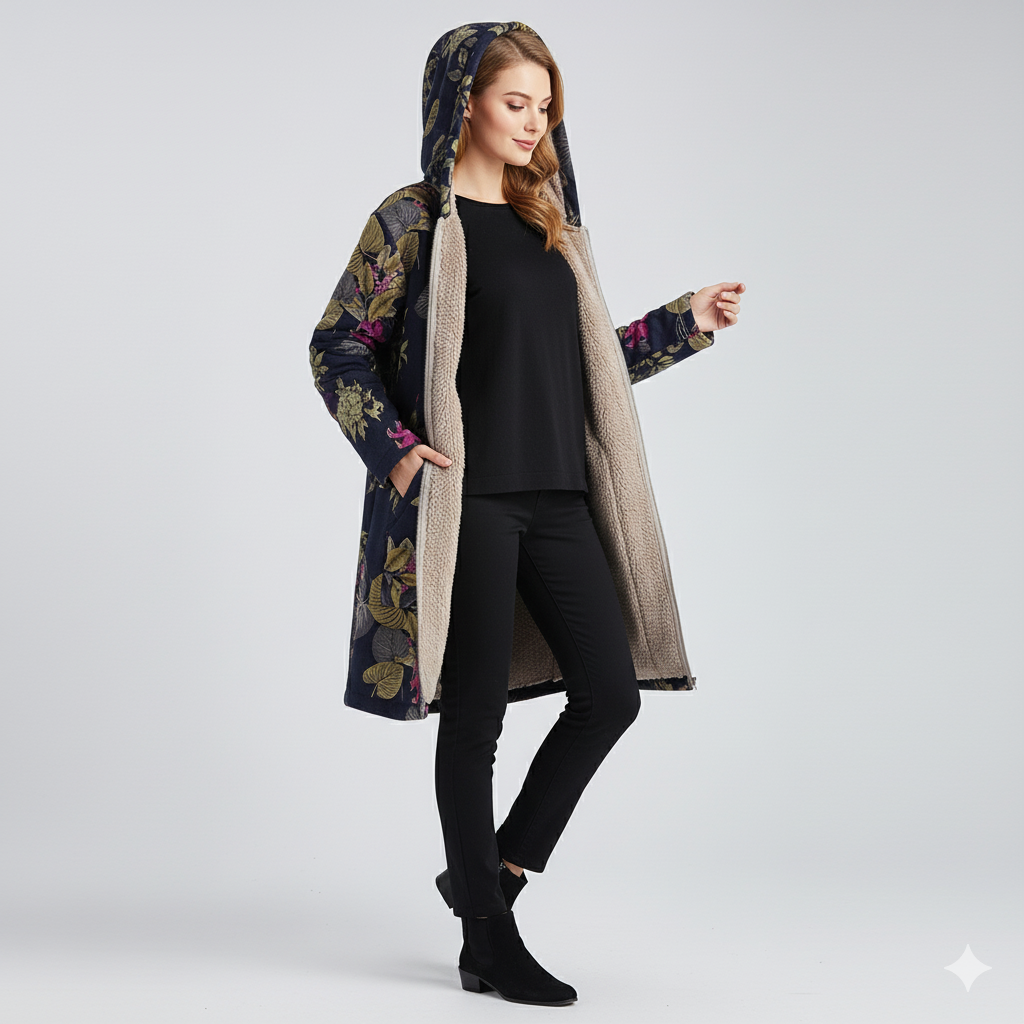 Sanae | Veste D’Hiver À Capuche Femme — Chaleur Douce & Style Floral