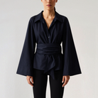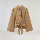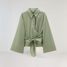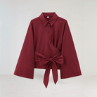この夏の女性用ポートフォリオシャツは、Vネックとフレアスリーブで魅力的なシルエットを提供します。ダブルボタンのクロス閉じが洗練さを加えています。暑い日にはぴったりで、快適さとスタイルを兼ね備えています。