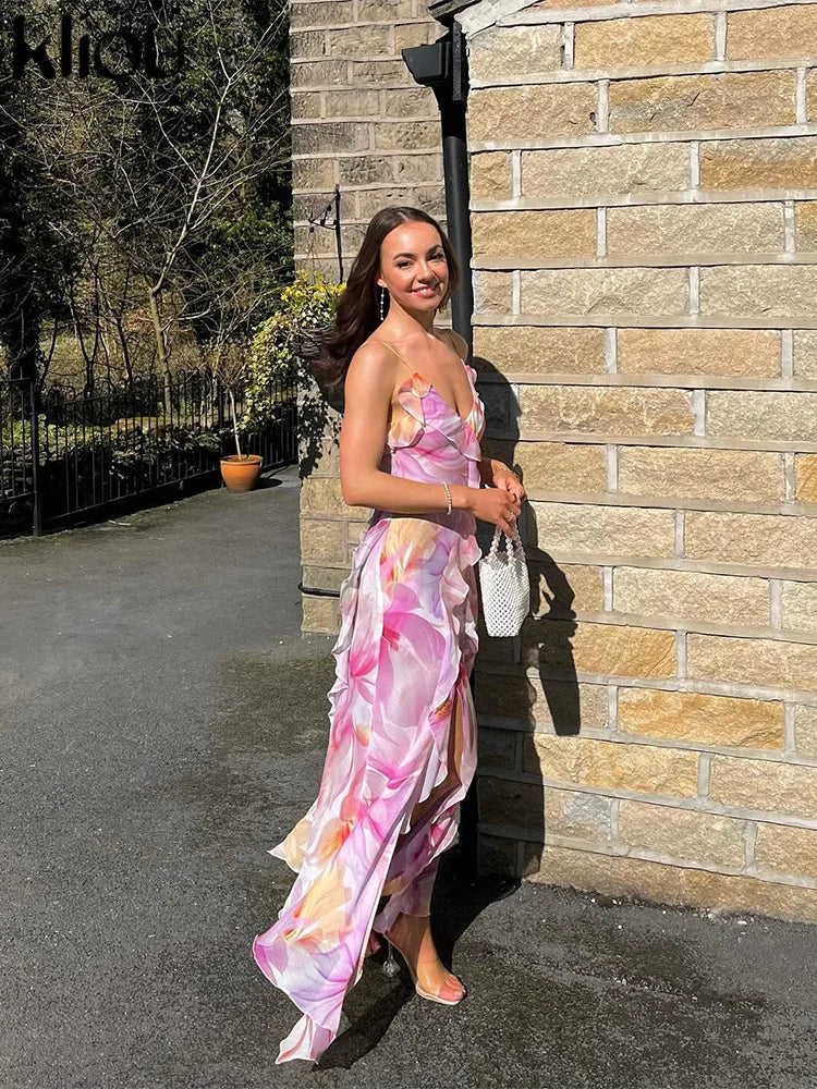 アデライン | フラワープリントのチュールスリットロングドレス – 優雅さと洗練