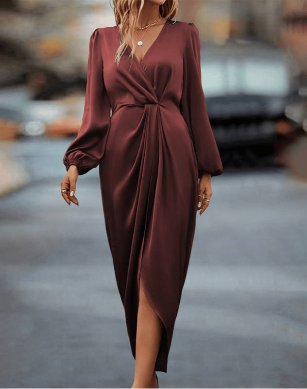 Marguerite | Chic Krysset Kjole med Lange Ermer